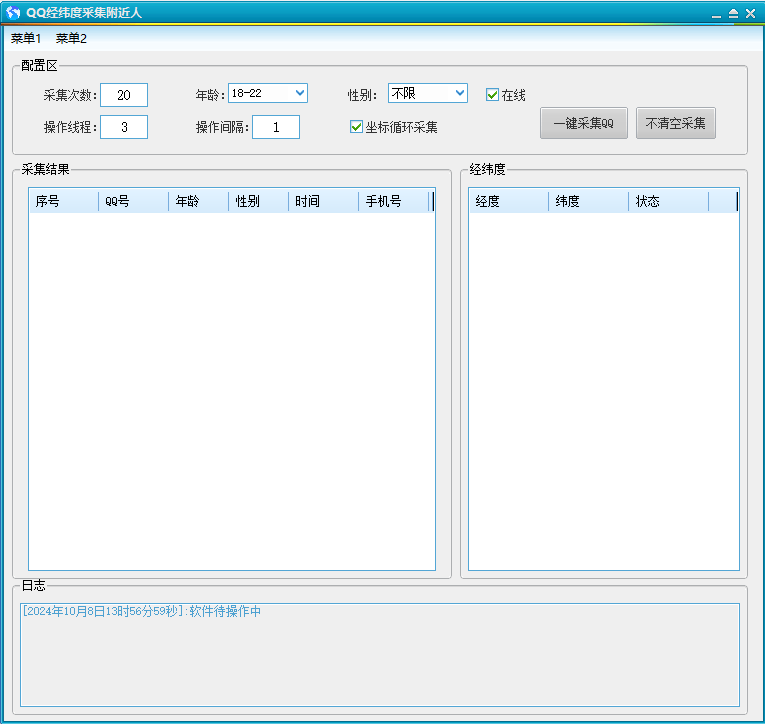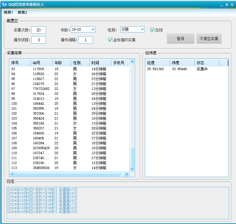 - 经纬度添加:支持批量添加经纬度,方便您快速定位到目标区域,采集附近的QQ用户信息。