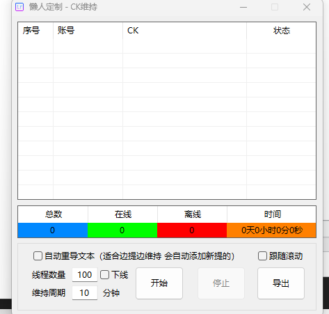 4. 启动软件:点击开始按钮,软件将自动执行维持CK的操作