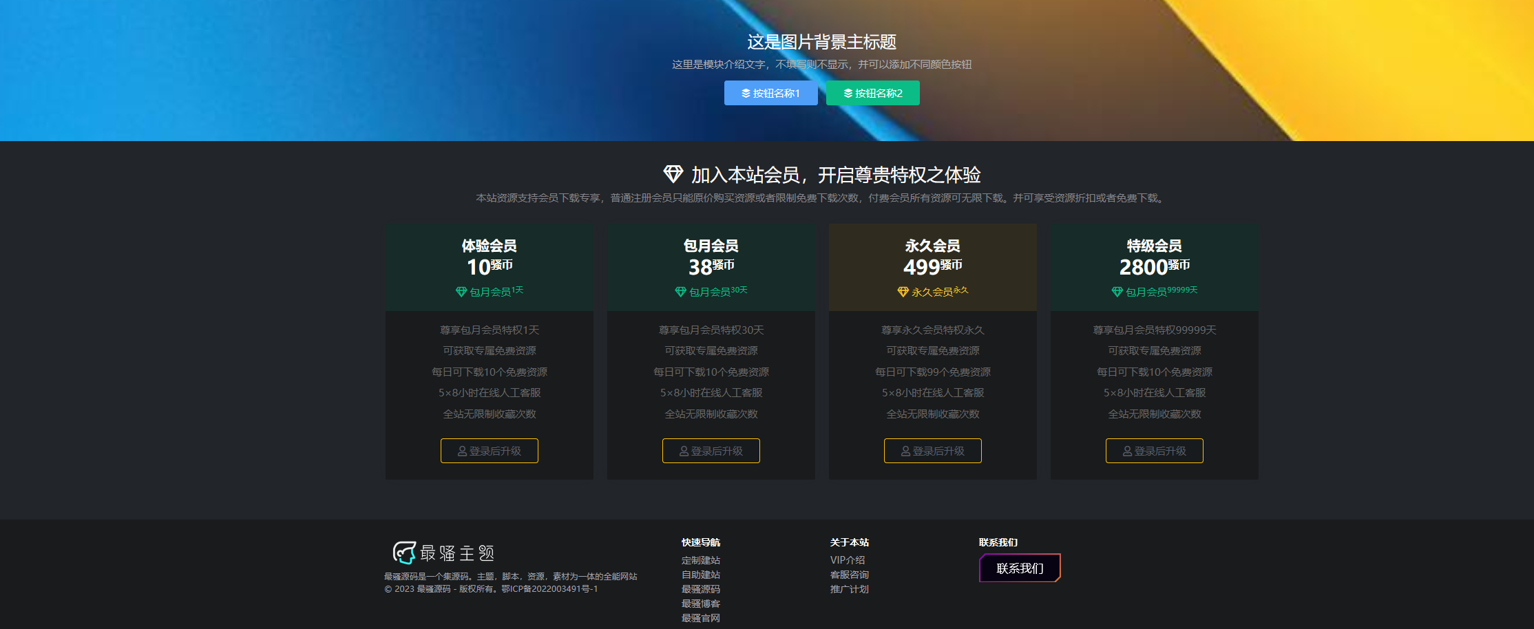 “骚主题”概念版支持顶部VIP快捷开通按钮、用户访客自行切换主题颜色、QQ扫码联系、电话客服功能等。这些功能增强了网站的互动性和用户友好性,使用户能够更方便地使用和享受网站提供的服务。
