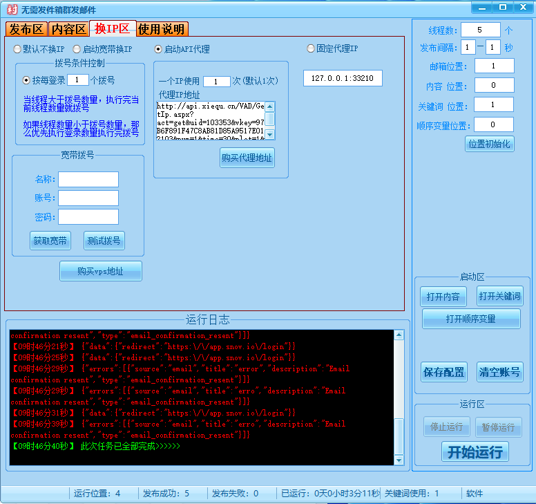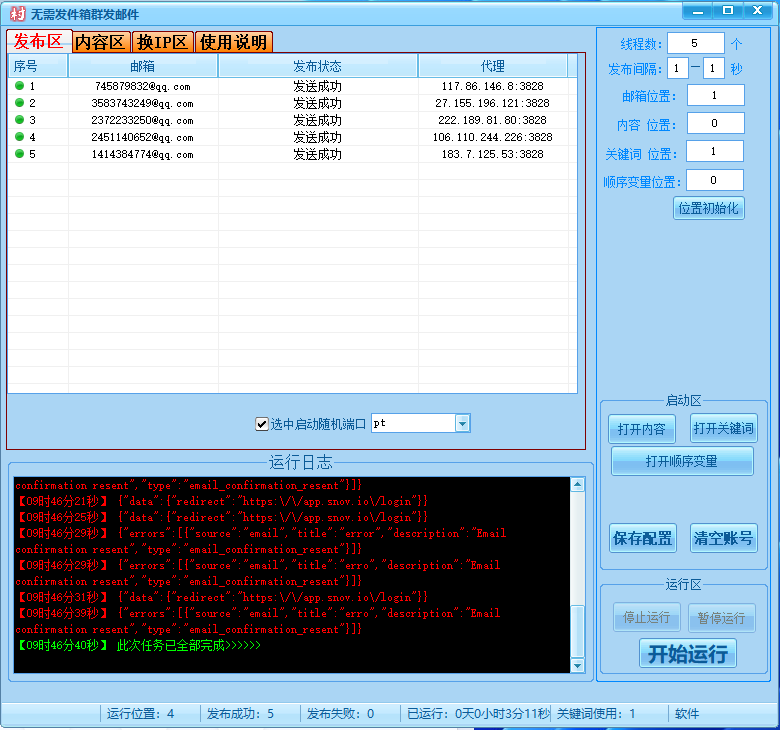 动态代理IP:软件使用动态代理IP,确保每个邮件的发送路径都是唯一的,避免了因重复IP地址而被邮件服务提供商标记为垃圾邮件的风险。