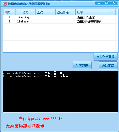 账号状态实时查询:用户只需输入谷歌账号信息,软件即可快速查询账号的当前状态,包括是否被封禁、封禁原因等,帮助用户及时了解账号情况。