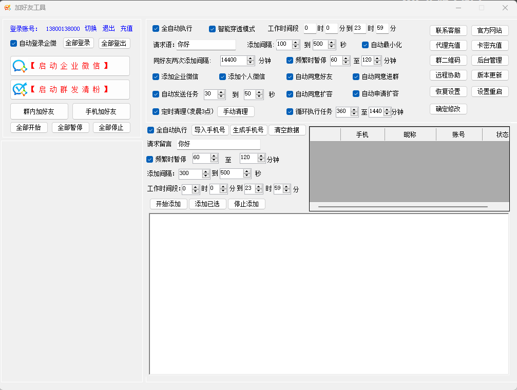 手机号加好友:通过导入手机号码列表,工具可以自动向这些手机号发送好友请求,拓展客户资源。