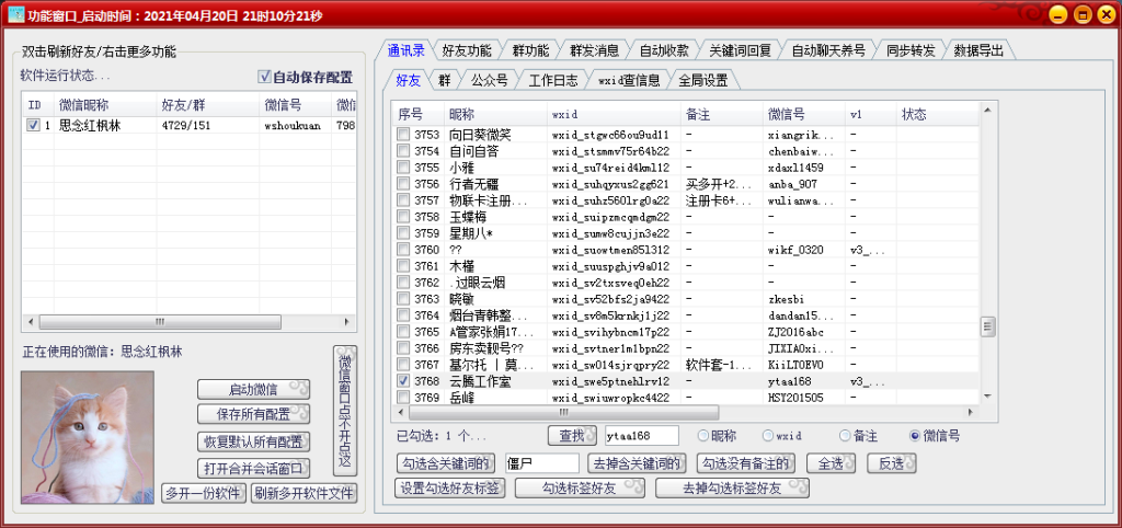 2.1 好友/群列表:可批量勾选好友/群,关键词勾选、勾选没有备注的、全选、反选、勾选好友设置标签、勾选标签好友等