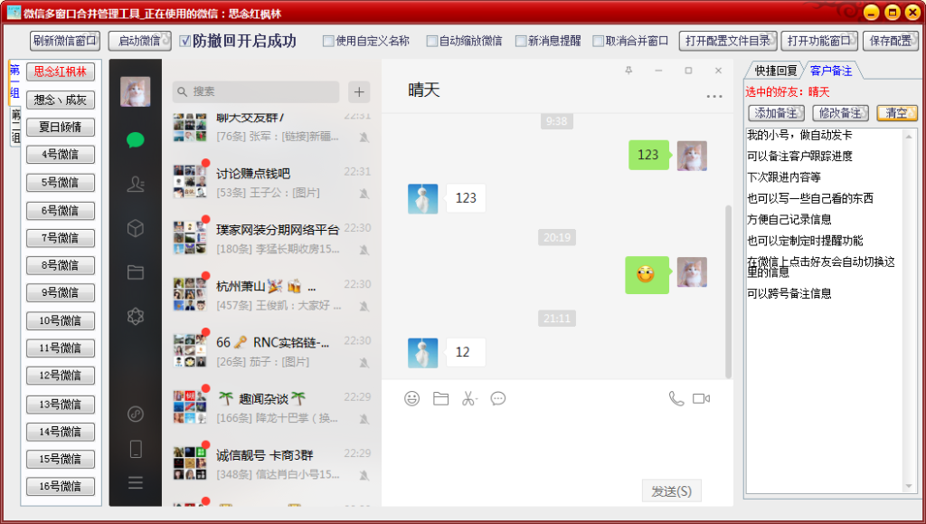 1.3 可合并多个微信窗口共同管理,最多可以合并32和微信
