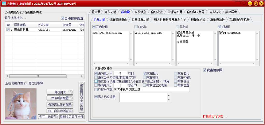 4.1.2 支持护群白/黑名单,白名单不受一切护群规则限制,黑名单触发所有护群规则
