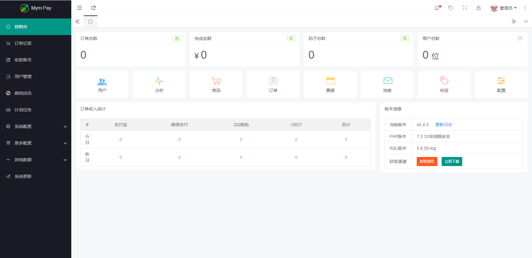 最新版MYMPay码支付系统源码支持PHP 7.0-8.2,推荐使用PHP 7.4。此外,系统需要安装XLoad扩展,并且要求MySQL版本为5.6。