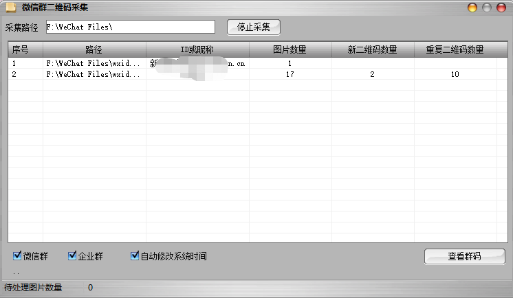 二维码存群实时版,实时采集微信群内发过的二维码,识别企微和个微群,包更新,配合其他相关软件,进行引流。软件功能;群内二维码实时采集