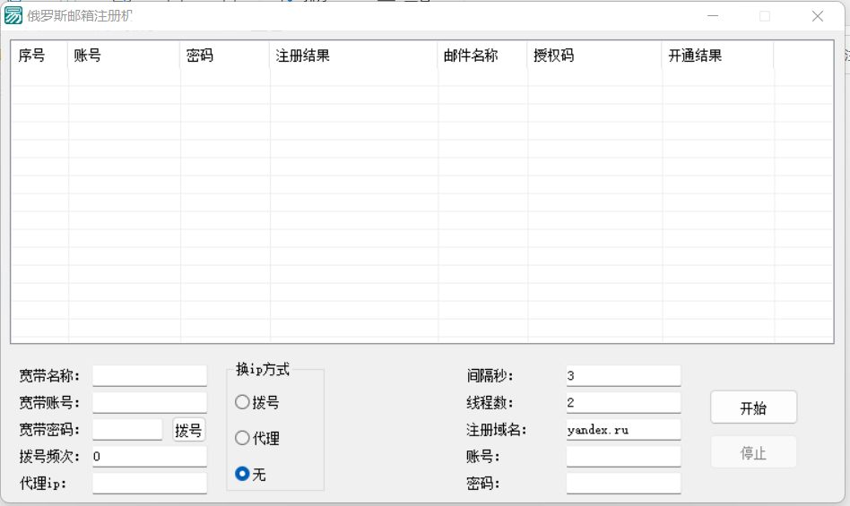 俄罗斯yaru邮箱注册机。使用国内IP ,不需要大码,直接对接接码平台,注册成本大约1毛钱,动态IP可以使用收费的,也可以使用免费的
