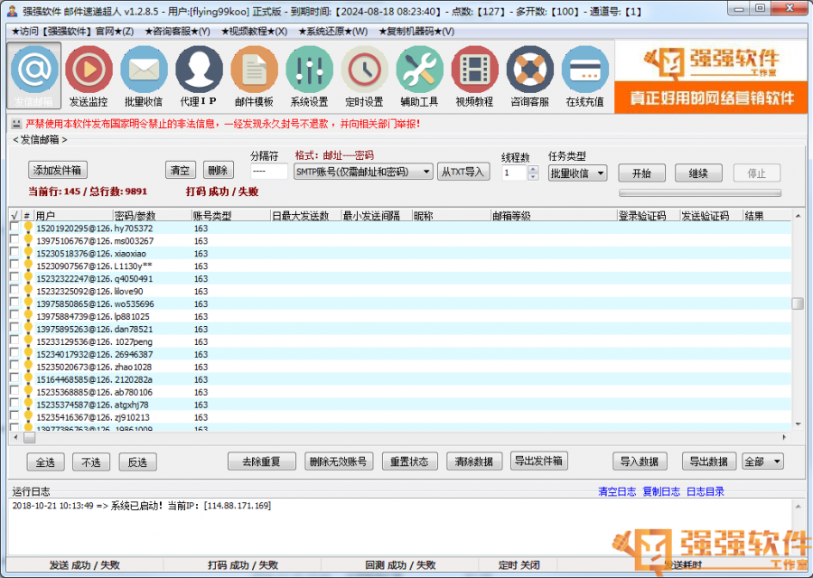 - 发件箱(最好使用企业邮箱,如果是普通个人邮箱的话,积分/等级越高越好)