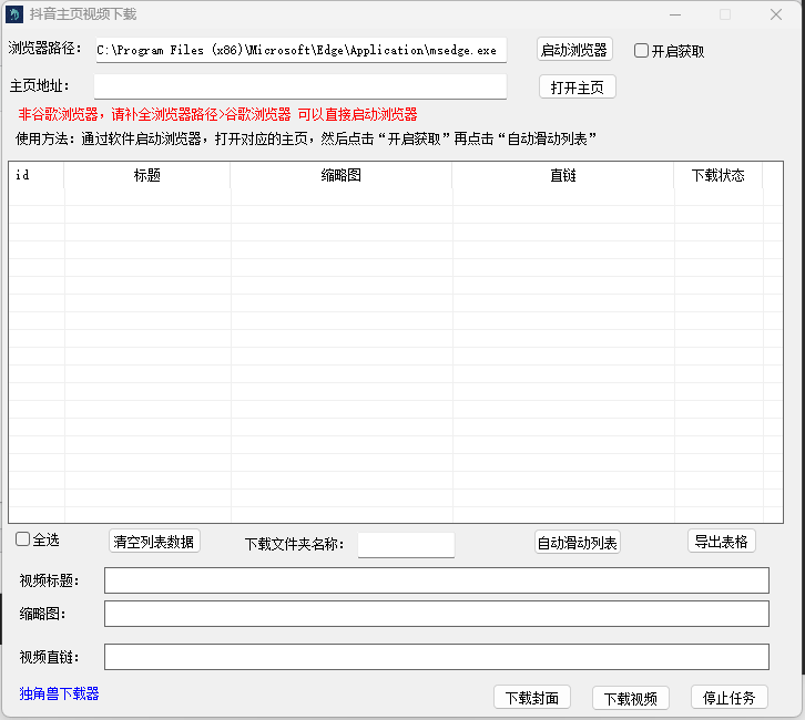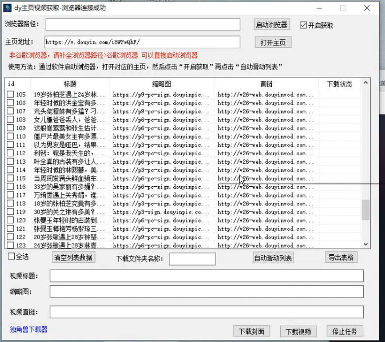 抖音主页视频下载是一款全自动批量下载抖音主页视频的软件工具,支持下载封面,下载视频,下载标题,自动导出表格