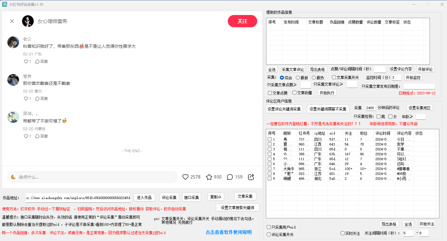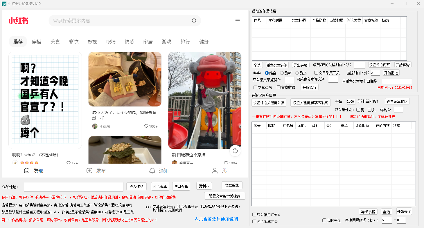 小红书自动采集截流协议软件是一款小红书平台的营销协议软件,软件能够自动采集关键词作品,作品评论,评论用户采集,作品监控,文章点赞,文章收藏,自动关注,采集用户UID,筛选性别,筛选年龄,采集地区,作品评论等,帮助用户获取精准用户,在评论区截流。
