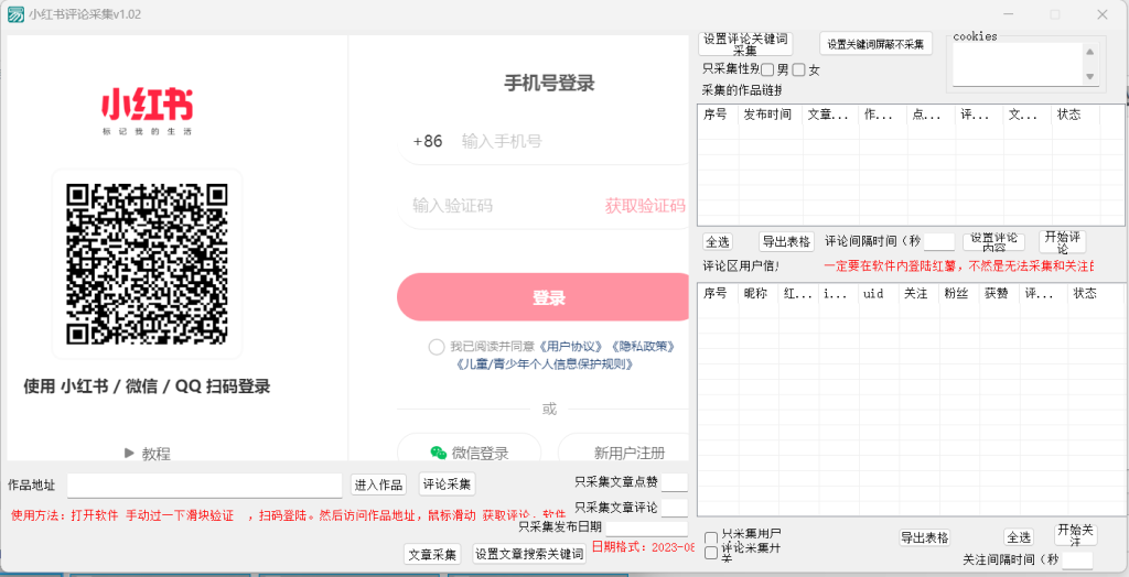 支持关键词采集,点赞,关注,评论, 支持采集文章,采集作品,采集用户,筛选性别,