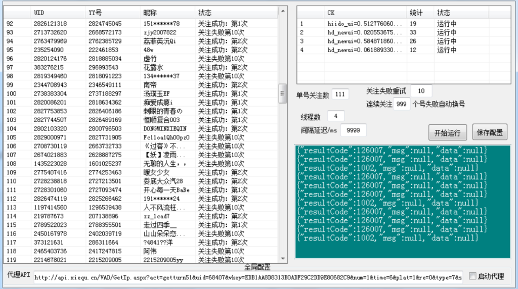 YY采集 用户 UID YY号昵称等, 修改资料 自动关注