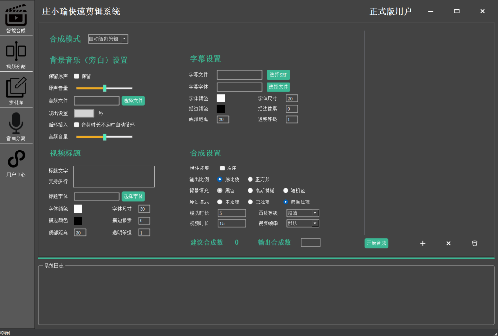 自定义背景音乐,自定义视频标题,自定义字幕设置,自定义合成设置