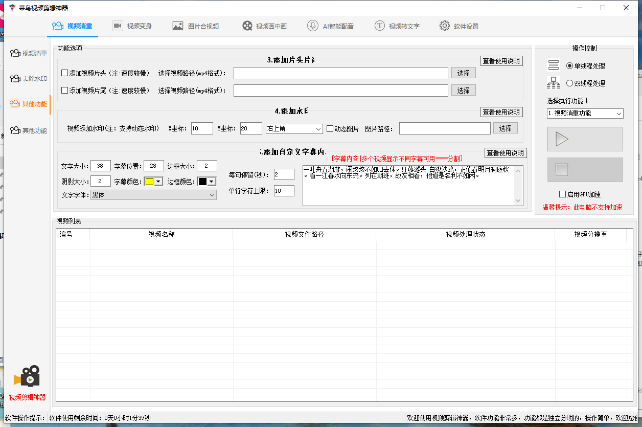 3.添加和去除水印 自定义字幕添加