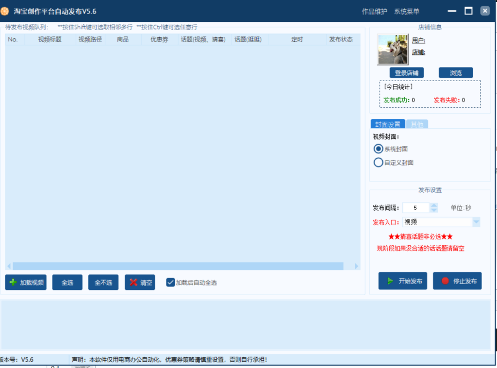 软件工作过程中,不要在其他的入口继续发布(只留下此软件发布视频)