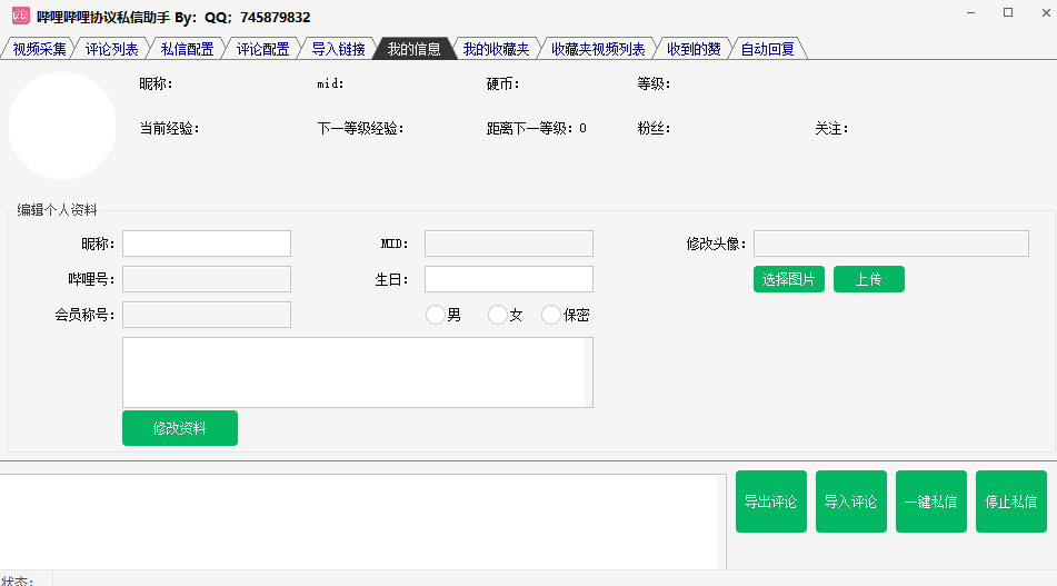 视频采集,评论采集,自动私信,自动回复,关键词采集,自动评论,修改资料