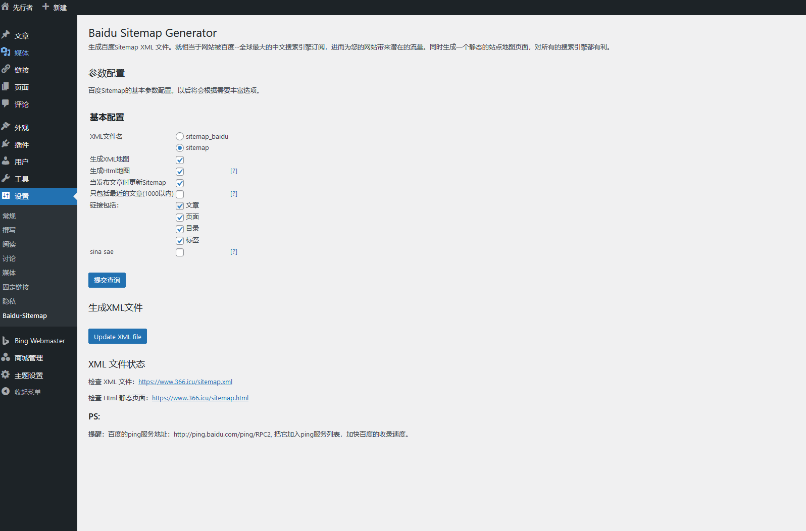 3. 提交到搜索引擎:插件可以帮助您将站点地图自动提交到主要搜索引擎,如Google、Bing等,加快搜索引擎对网站内容的抓取和索引。