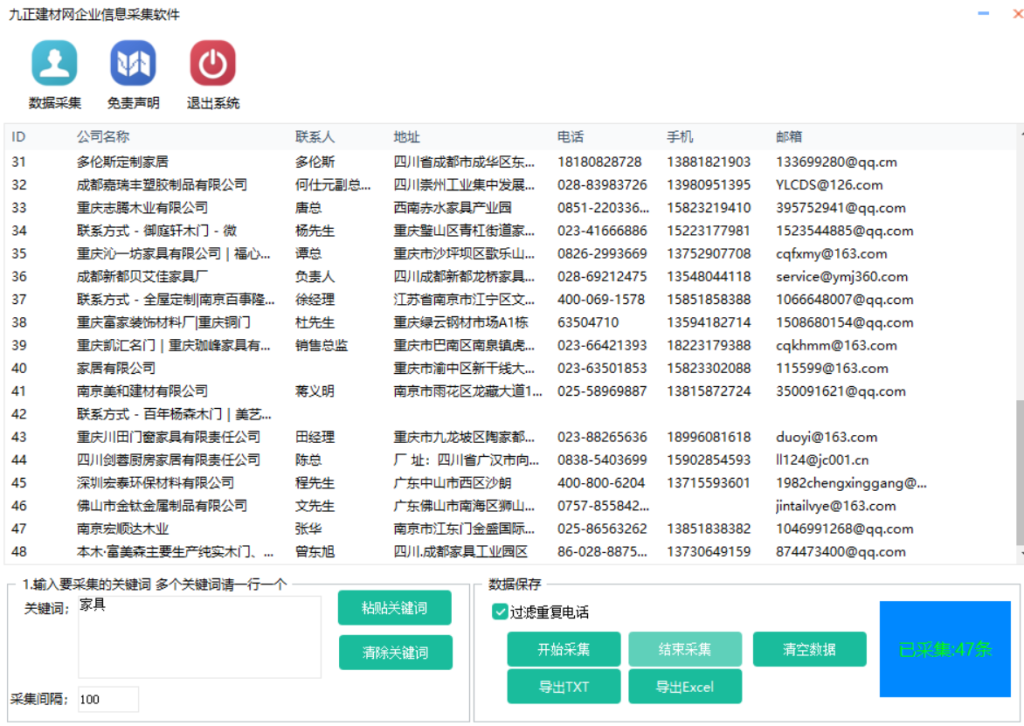 九正建材网信息采集软件