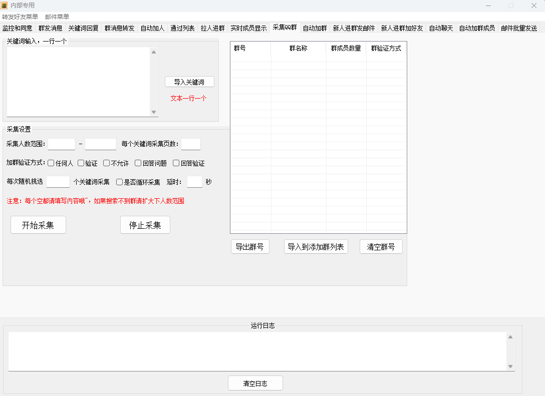 关键词采集群号:通过关键词搜索,自动采集符合条件的群号,便于进行精准的社群扩展和营销推广。