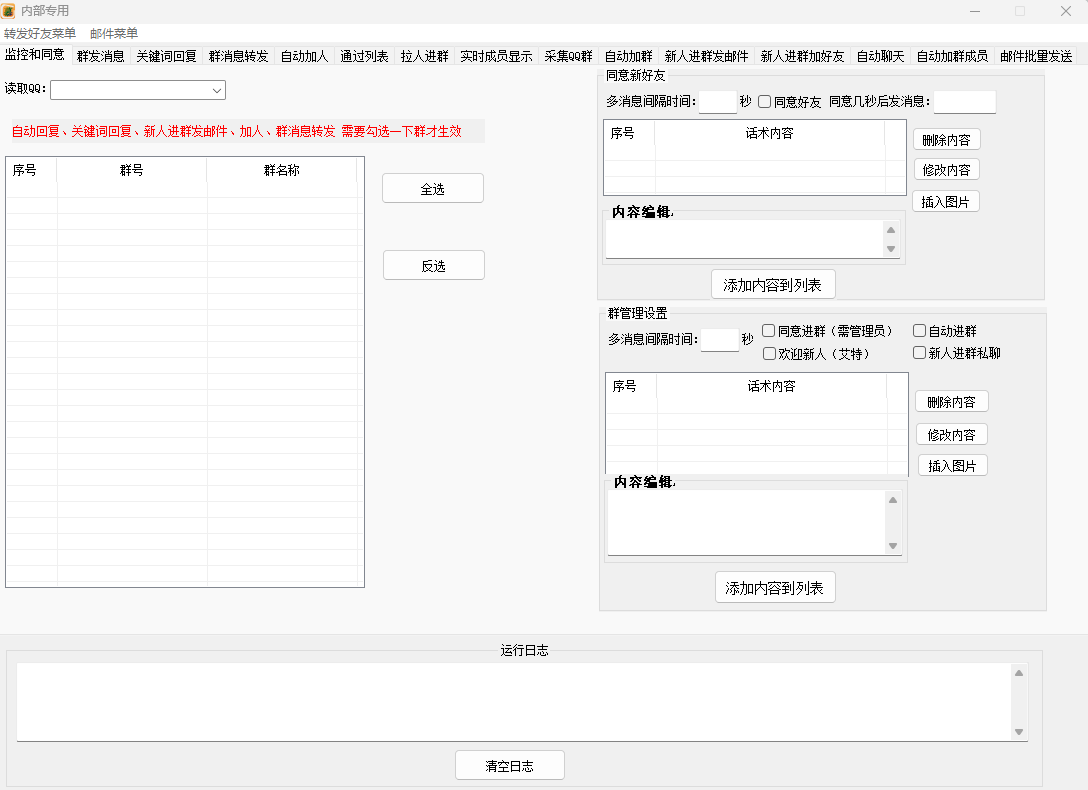 自动同意好友和进群请求:软件可以自动同意好友请求和进群请求,简化了管理流程,提升了效率。