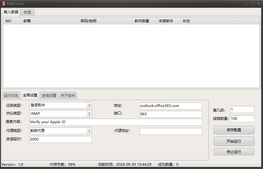 1. 登录取件:MailCheck1.6支持批量登录微软邮箱,简化了多账号管理的复杂性,方便用户对多个邮箱进行统一操作和管理。