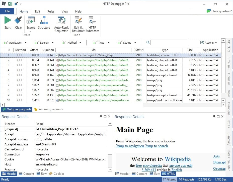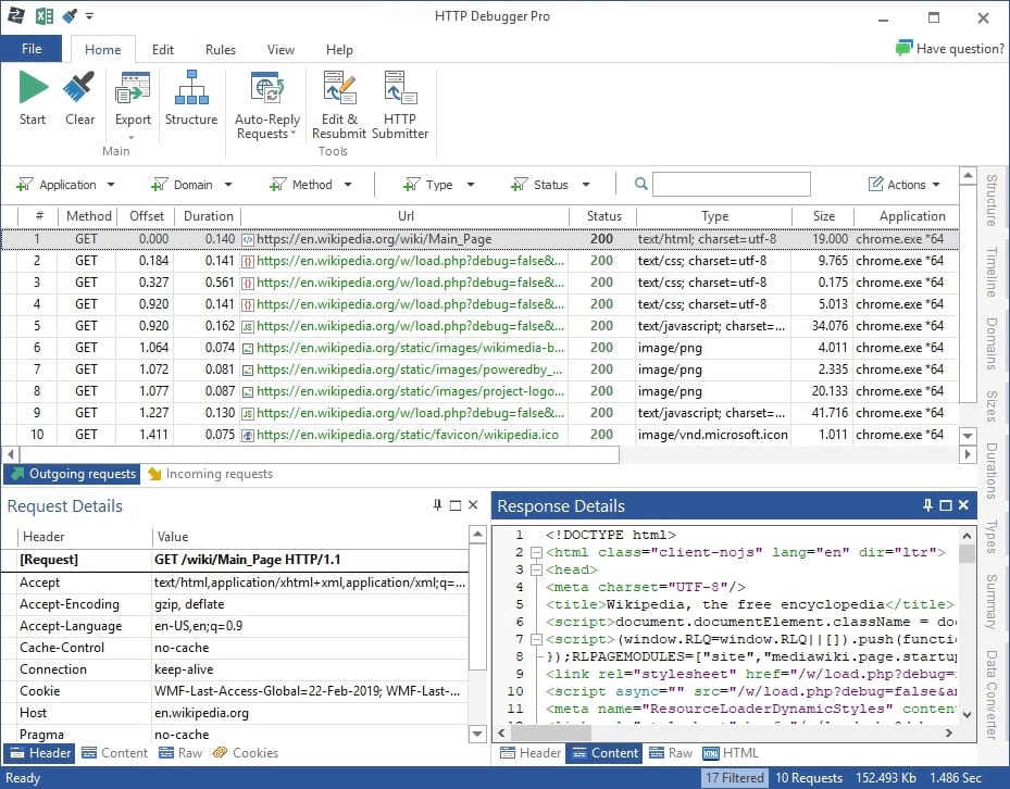 - 支持HTTP和HTTPS(SSL加密)网络协议的跟踪和调试:HTTPDebugger可以查看HTTP/HTTPS协议连接的详细过程和返回结果。