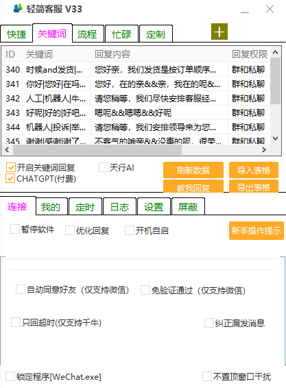 轻简客服营销工具支持私信回复功能,可以在第一时间回应客户的私信,增强客户体验。此外,工具还具备自动同意好友和免验证通过功能,方便企业快速添加客户为好友,建立更紧密的联系。