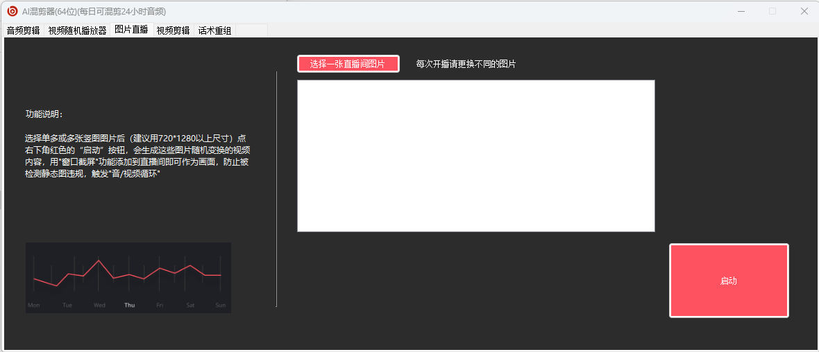 软件还支持图片混剪和图片直播功能,方便用户对图片进行编辑和展示。通过这些功能,用户可以轻松制作精美的图片集和直播内容。