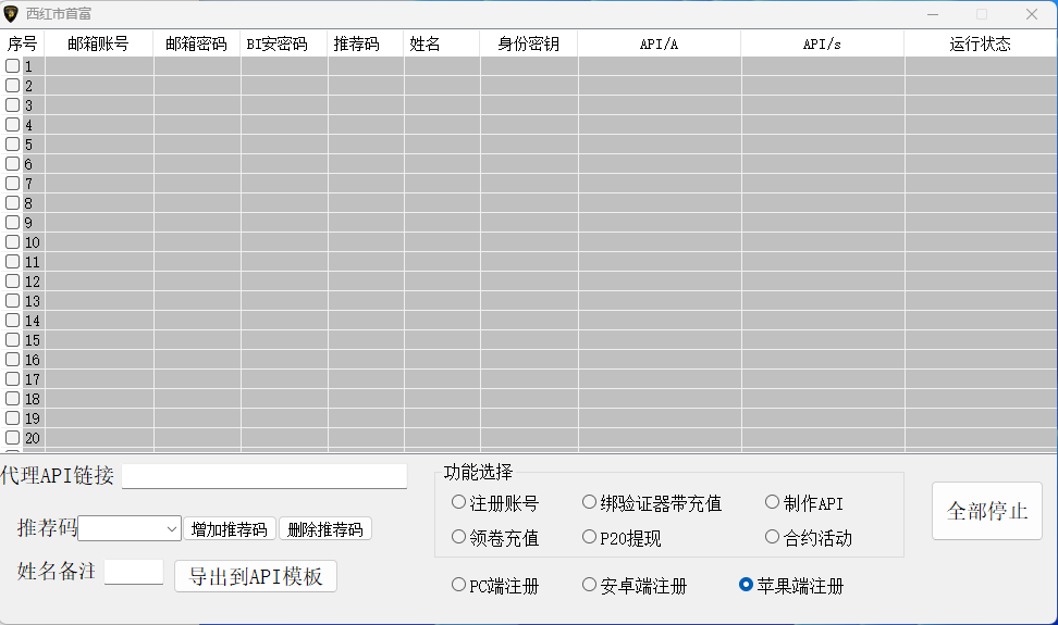 币安账号注册机的核心功能是批量注册币安账号。通过简单的操作,用户可以快速生成多个账号,满足不同业务需求。