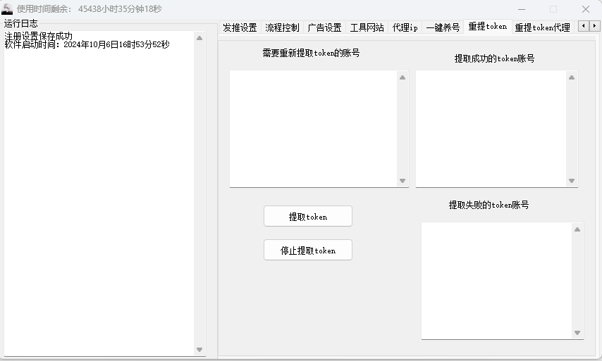 为了确保账号的安全性和稳定性,软件支持重提TOKEN和重提TOKEN代理功能,方便用户及时更新和管理账号信息。