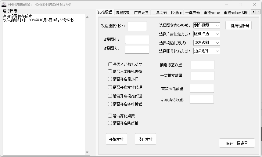 推特发送推文引流软件通过提供图文发送、简化点赞、开启防点推、支持转推、开启热门、支持切换IP、支持标签、支持文字广告、一键养号、重提TOKEN、重提TOKEN代理和防止被点等多种功能,帮助用户实现高效推广和引流。