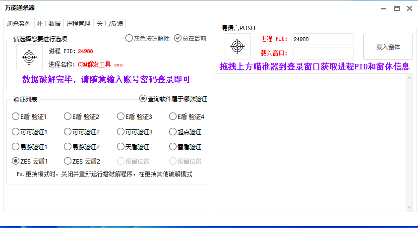 万能通杀器V4.2是一款专为检测和破解软件加密壳设计的工具。其核心功能包括: