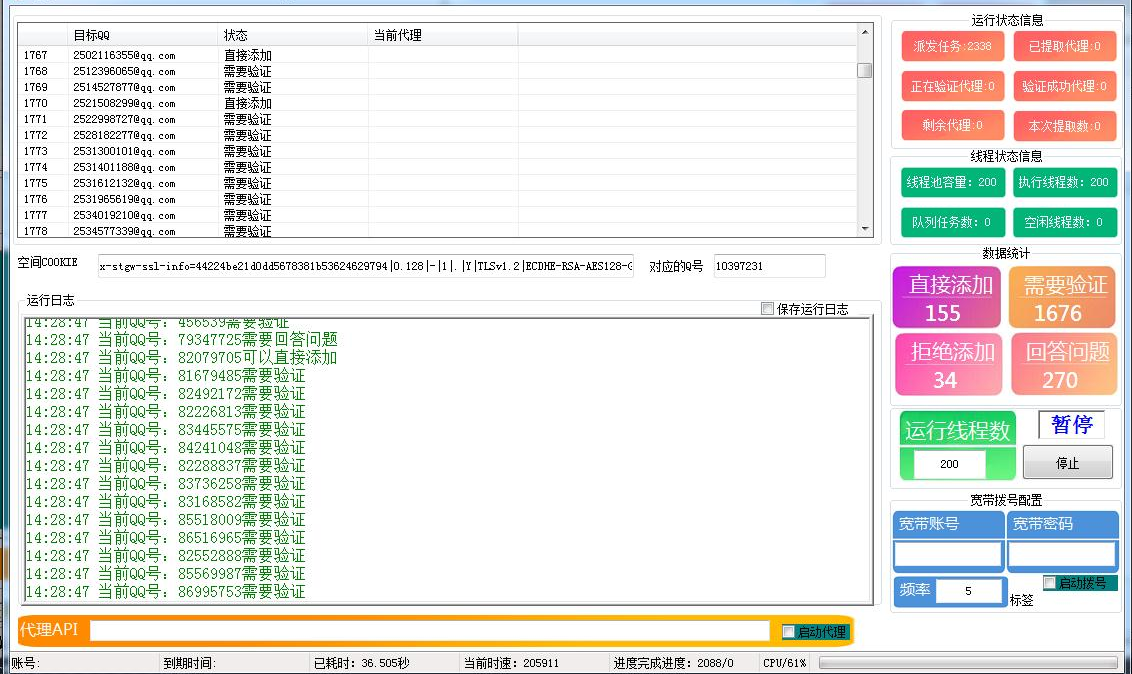 - 自动检测QQ号码加好友状态:软件会自动检测每个QQ号码的加好友状态,包括“直接添加”、“回答问题”、“需要验证”和“拒绝添加”等。